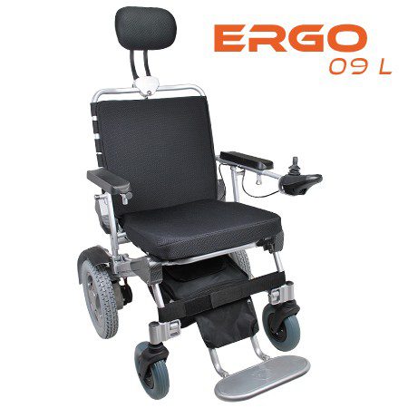 La nouvelle conception de l’Ergo 09 L permet de plier le fauteuil en moins de 3 secondes, grâce à son châssis « Aluminium » l’Ergo 09 pèse 28 kg* (*poids du fauteuil sans la batterie, cette dernière pèse 4,5 kg) et peut être ainsi manipuler avec beaucoup de facilité. Il supporte une charge maximum de 150 Kg.