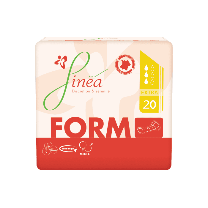 La protection Finea Form Extra protection anatomique mixte pour incontinence modérée . Elle épouse au mieux l'anatomie de la personne, le confort est maximal.