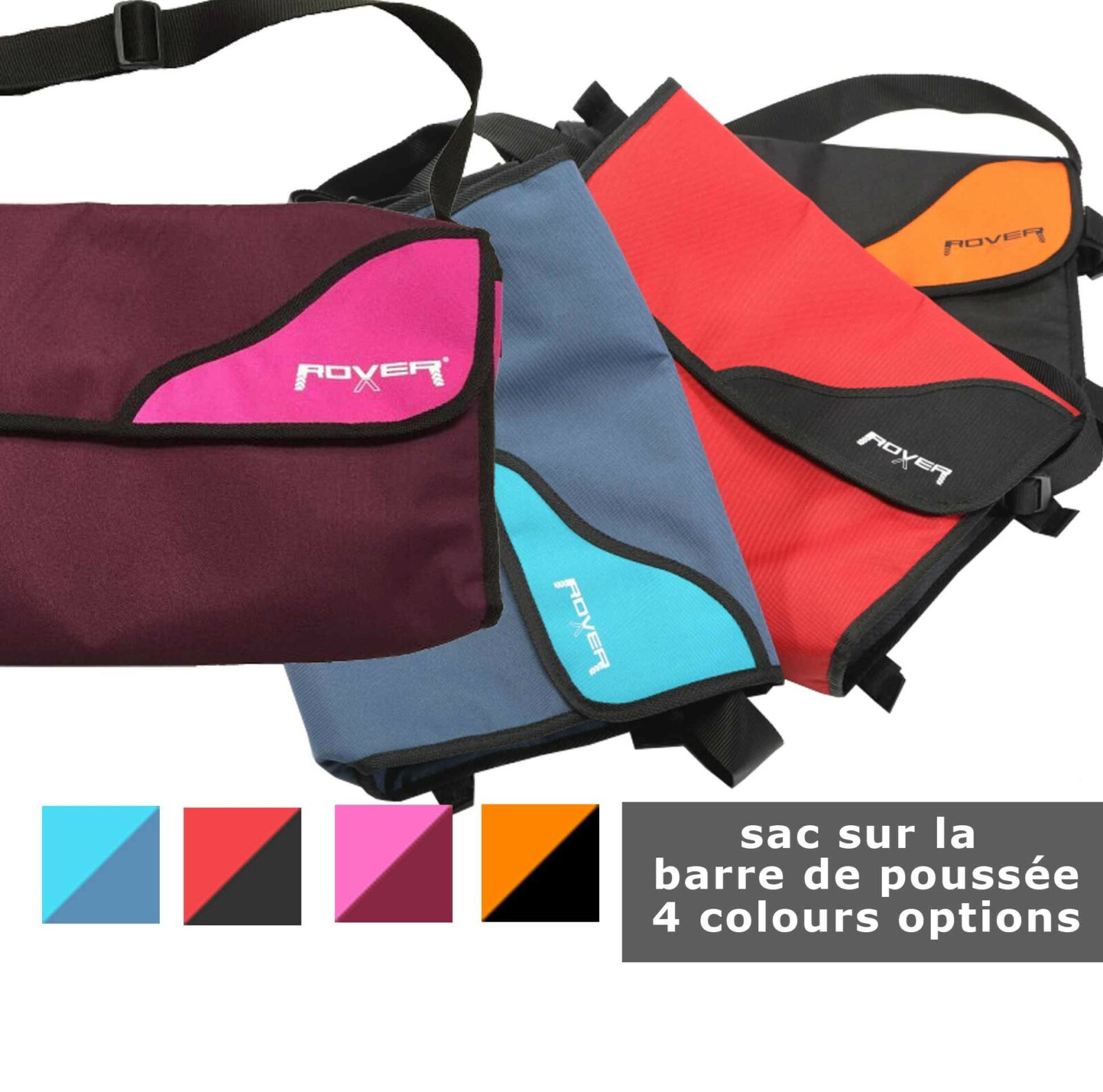 • Sac sur la barre de poussée : Pratique pour transporter des objets supplémentaires.